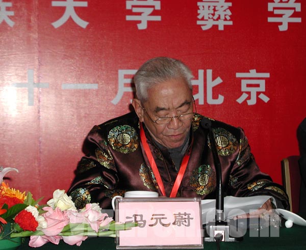云南省彝学学会会长马立三主持会议,老领导禄智明、禄文斌、龙志毅、冯元蔚、刘绍先、孙自强及彝学专家刘尧汉、戴庆厦和中央民族大学常务副校长陈理在主席台就座。0LI彝族人网(彝人网)- 彝族文化网络博物馆